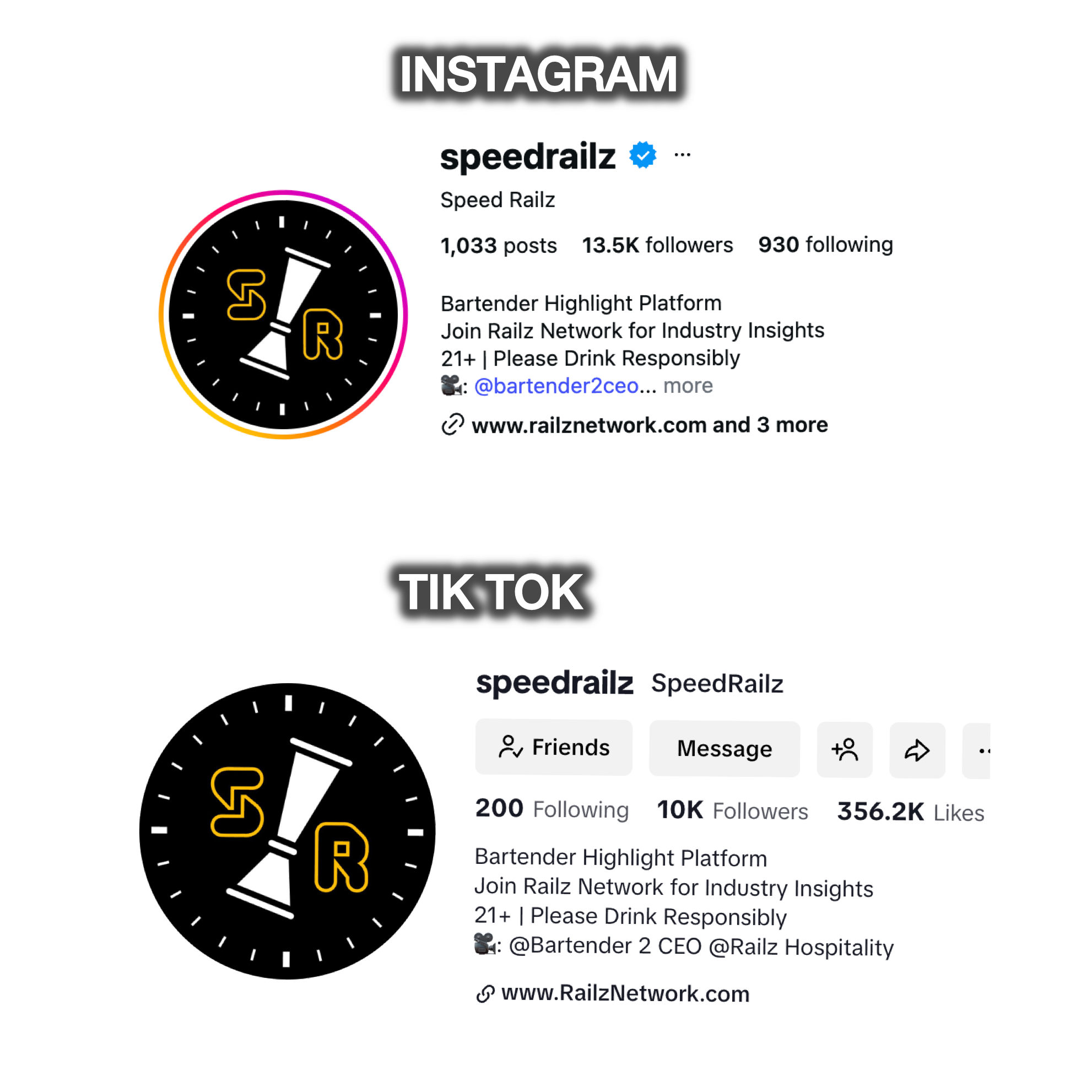 - Railz Hospitality Network: Shared across Bartender2CEO, SpeedRailz, Craft Clash TV, and B2C Creative platforms