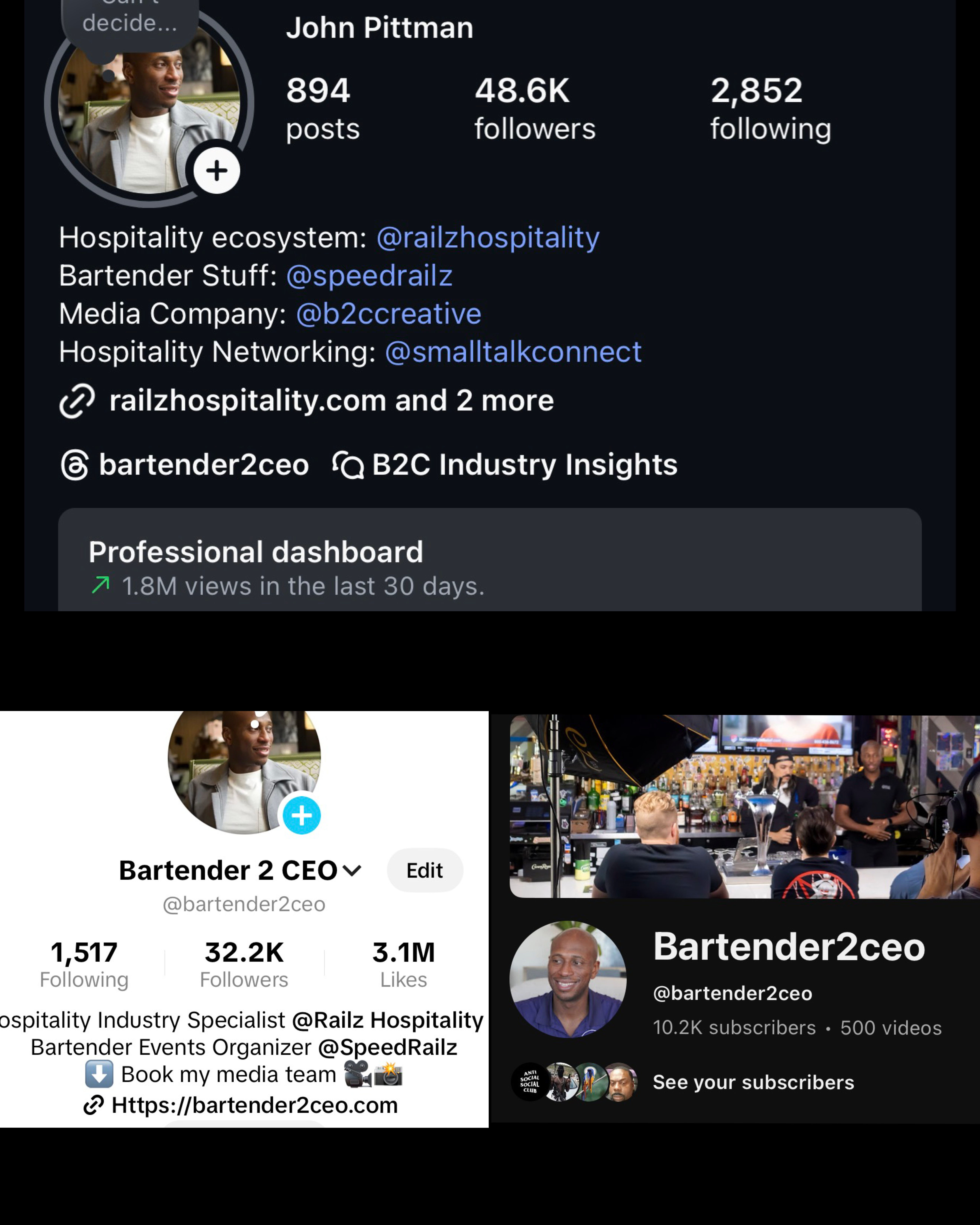 - 80,000+ followers across Instagram, TikTok, and YouTube under brand @Bartender2ceo